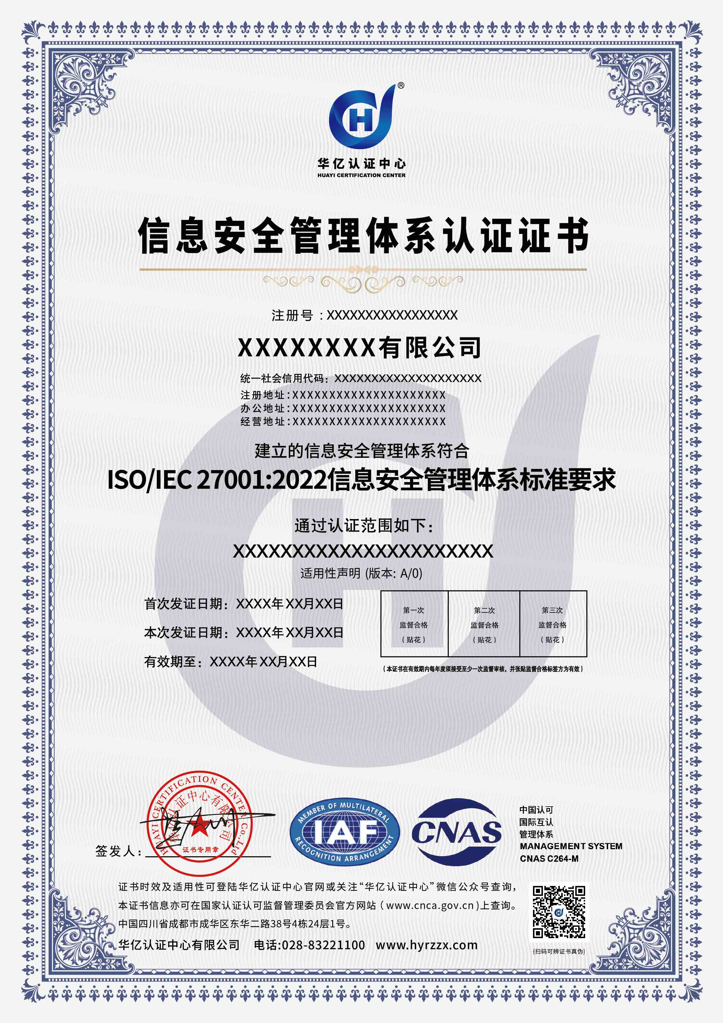 信息安全管理体系证书
